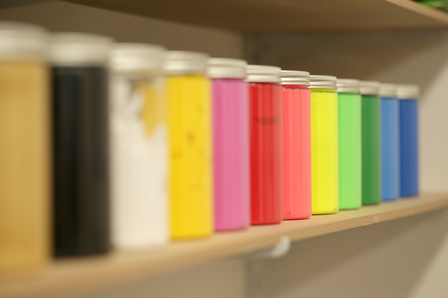 Ich verwende wasserbasierte Farben für Textil- und Kunstdrucke.